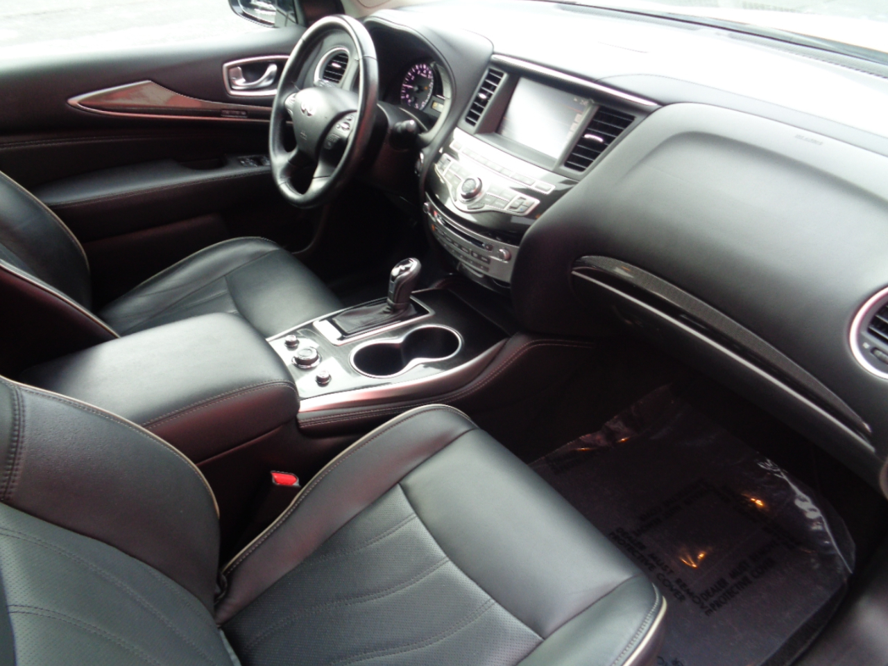 Pearl White with Black Leather Interior. 3.5L V-6 with Automatic Transmission. LOADED with options including 3RD ROW SEAT, Power Windows/Locks/Mirrors/Seats/Lift Gate, AM/FM Stereo with CD Player & NAVIGATION SYSTEM, Cruise Control, Keyless Entry with Remote Start, Steering Wheel Controls, Heated/Memory Seats, Sunroof, Back Up Camera with Sensors, Dual/Rear Climate Control & Alloy Wheels with Newer Tires. This LOW MILEAGE & WELL EQUIPPED QX60 drives great and includes a clean Autocheck. $14,995