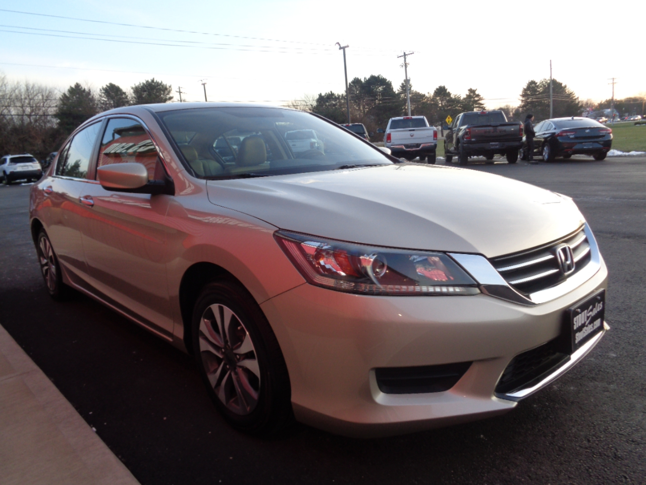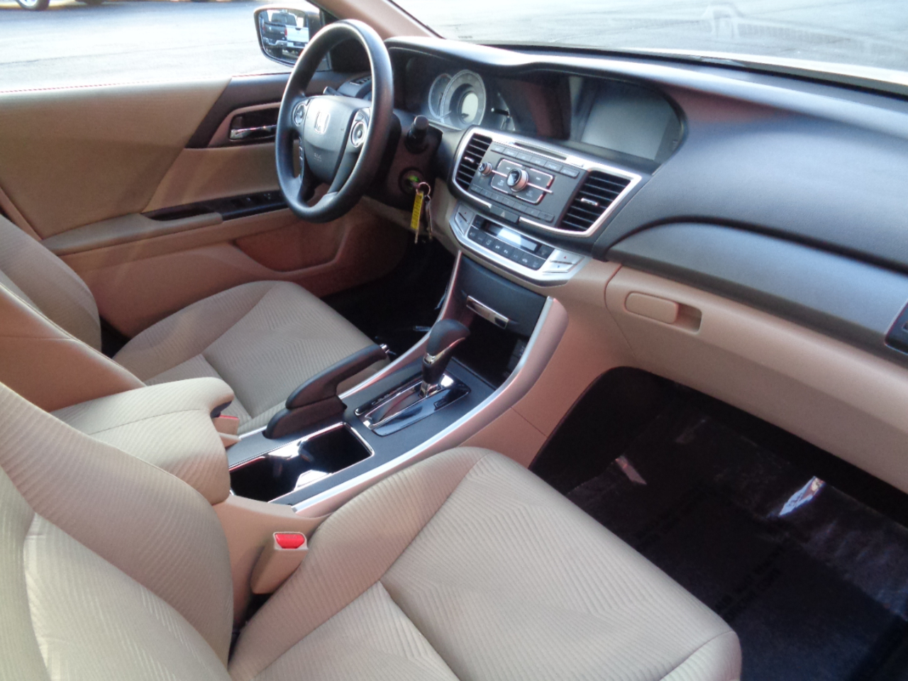 Champagne Frost Pearl with Tan Cloth Interior. FUEL EFFICIENT 2.4L 4-Cylinder with Automatic Transmission. Options include Power Windows/Locks/Mirrors, AM/FM Stereo with CD Player, Cruise Control, Keyless Entry, Steering Wheel Controls, Back Up Camera & Alloy Wheels with Newer Tires. This WELL KEPT 1-OWNER Accord gets 30+MPG and includes a clean Autocheck. $9,995